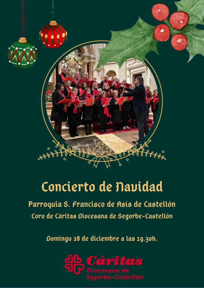 El Coro de Cáritas Diocesana de Segorbe-Castellón ofrecera un concierto de Navidad, el próximo domingo día 28 de diciembre a las 19.30 horas en las Parroquia de San Francisco de Asís de Castellón.