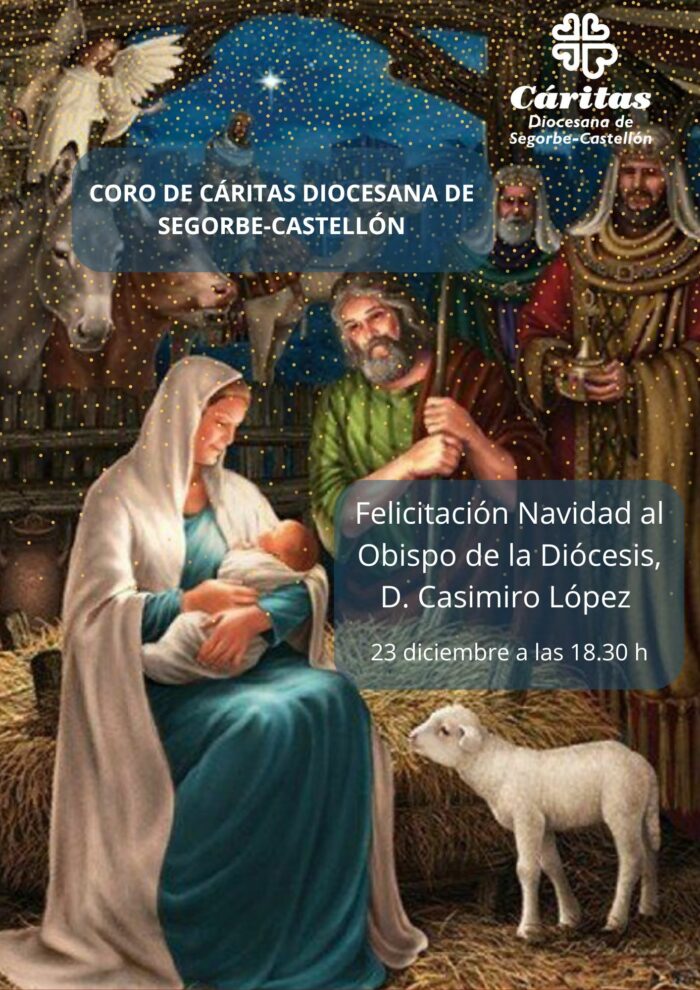 El Coro de Cáritas Diocesana de Segorbe-Castellón ofrecera un pequeño concierto para felicitar la Navidad a nuestro Obispo D. Casimiro López Llorente el próximo martes día 23 de diciembre a las 18.30 horas en el palacio episcopal.