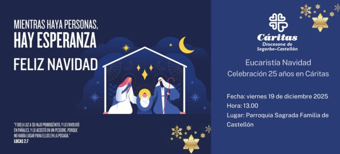 Os invitamos a la Eucaristía de Navidad y a la celebración de los 25 años en Cáritas del voluntariado y del personal laboral.