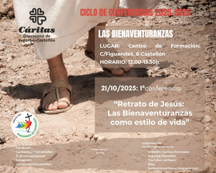 La conferencia tendrá lugar en el local de Formación de Cáritas Diocesana de la calle Figueroles 6 de Castellón de la Plana, en horario de 12.00 a 13.30 horas.