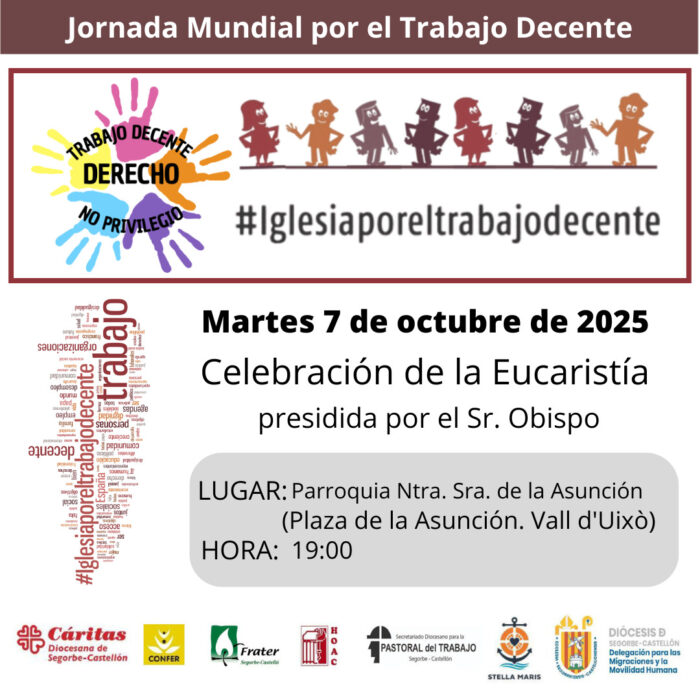 Celebraremos una Eucaristía presidida por el Sr. Obispo en la parroquia Nuestra Señora de la Asunción de La Vall d’Uixó el próximo martes 7 de octubre a las 19 horas.