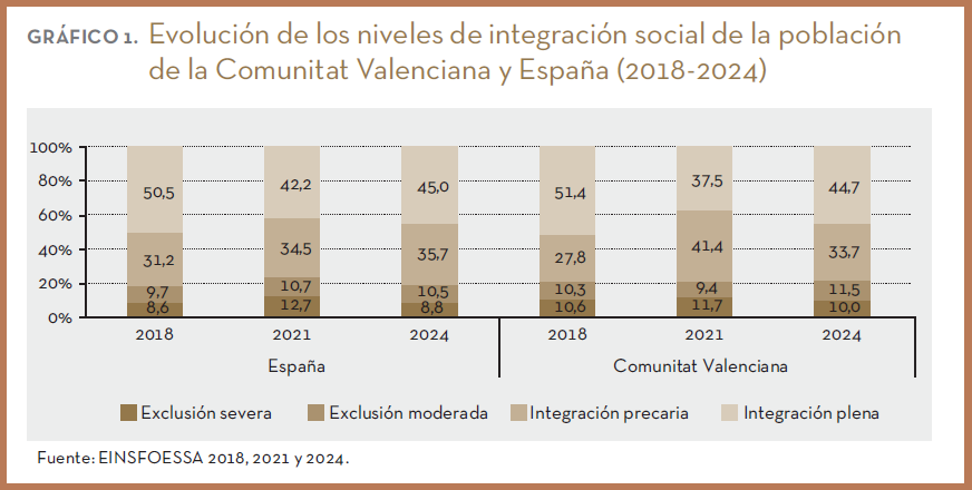 Cáritas Comunitat Valenciana ha alertado, en la presentación del Informe FOESSA sobre Exclusión y Desarrollo Social en la Comunitat Valenciana 2025 de que una de cada cinco familias vive en exclusión social en la Comunitat, dato que apenas ha mejorado desde 2018.