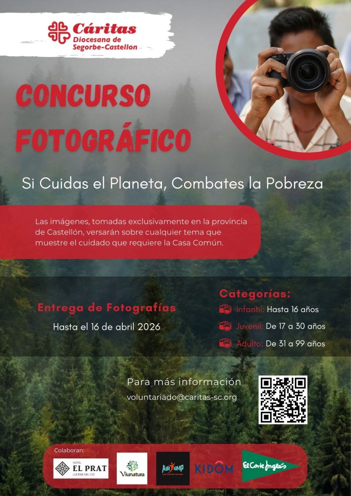 Cáritas Diocesana de Segorbe-Castellón, convoca el V Concurso de fotografía, “Si cuidas el planeta, combates la pobreza“ su finalidad es descubrir y admirar la belleza del entorno natural de nuestra provincia de Castellón y fomentar el cuidado de la Casa Común que está tan relacionado con el cuidado de las personas. Este se regirá según las siguientes